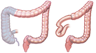 Other times, the exposed end of the colon or small intestine is sewn to the belly (abdominal) wall through an incision. It will then drain into a special bag outside your body. This is called a colostomy or ileostomy. Your surgeon can discuss this with you at your visit before surgery.